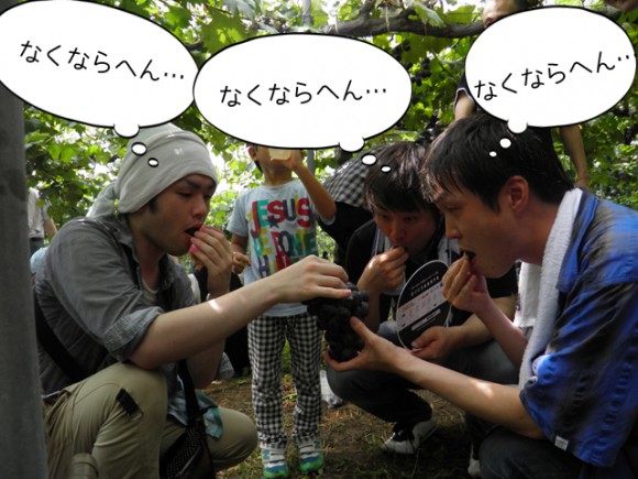 という声にグロッキーにもなりつつ…一番ブドウの粒が多い房を探したチームには豪華賞品が。