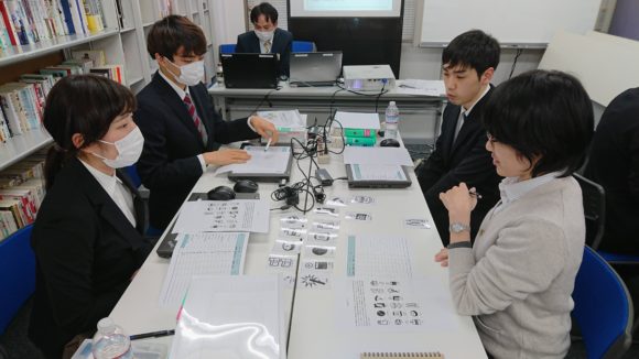 与えられた情報をもとにまずは個人で検討した結果を出した上で、グループ4人で