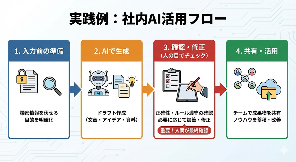 - チーム内で共有し、改善していくことで、AIの力を最大限に活用できる