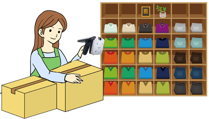 高い場所や積み重ねて保管している商品は脚立などを使用してバーコードを読み取る必要があるため、作業に危険が伴います。